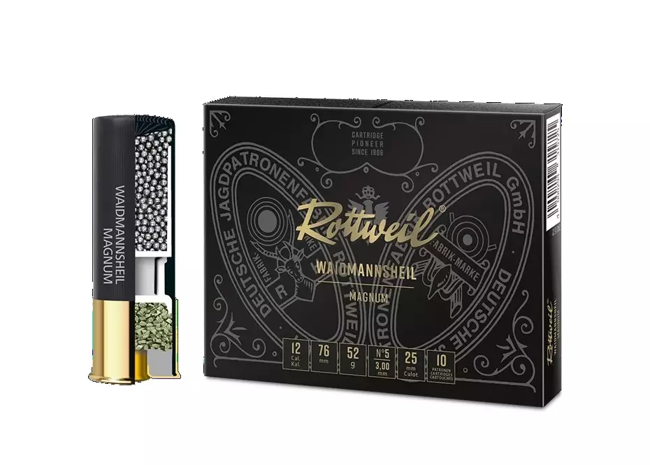 -12/76 ROTTWEIL Magnum. -Lead shot. -Shot load 52g. -Plastic casing. -Velocity 380m/s. -Pack size 10 pcs.