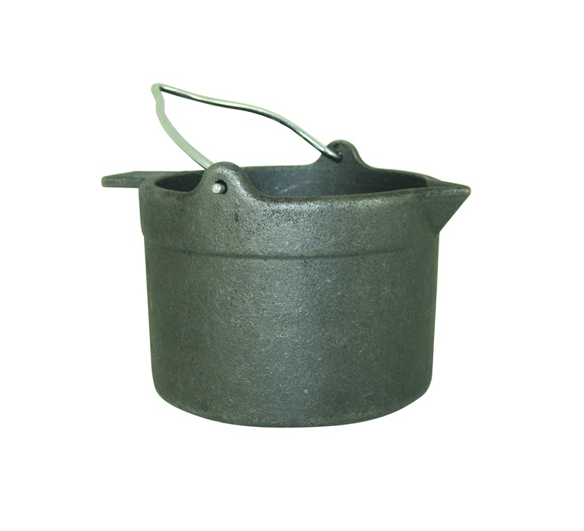 Cast iron melting pot for melting lead. Works with any heat source. The pot can hold approximately 4.5kg of lead. The spout makes it easy to pour molten lead into a mold.