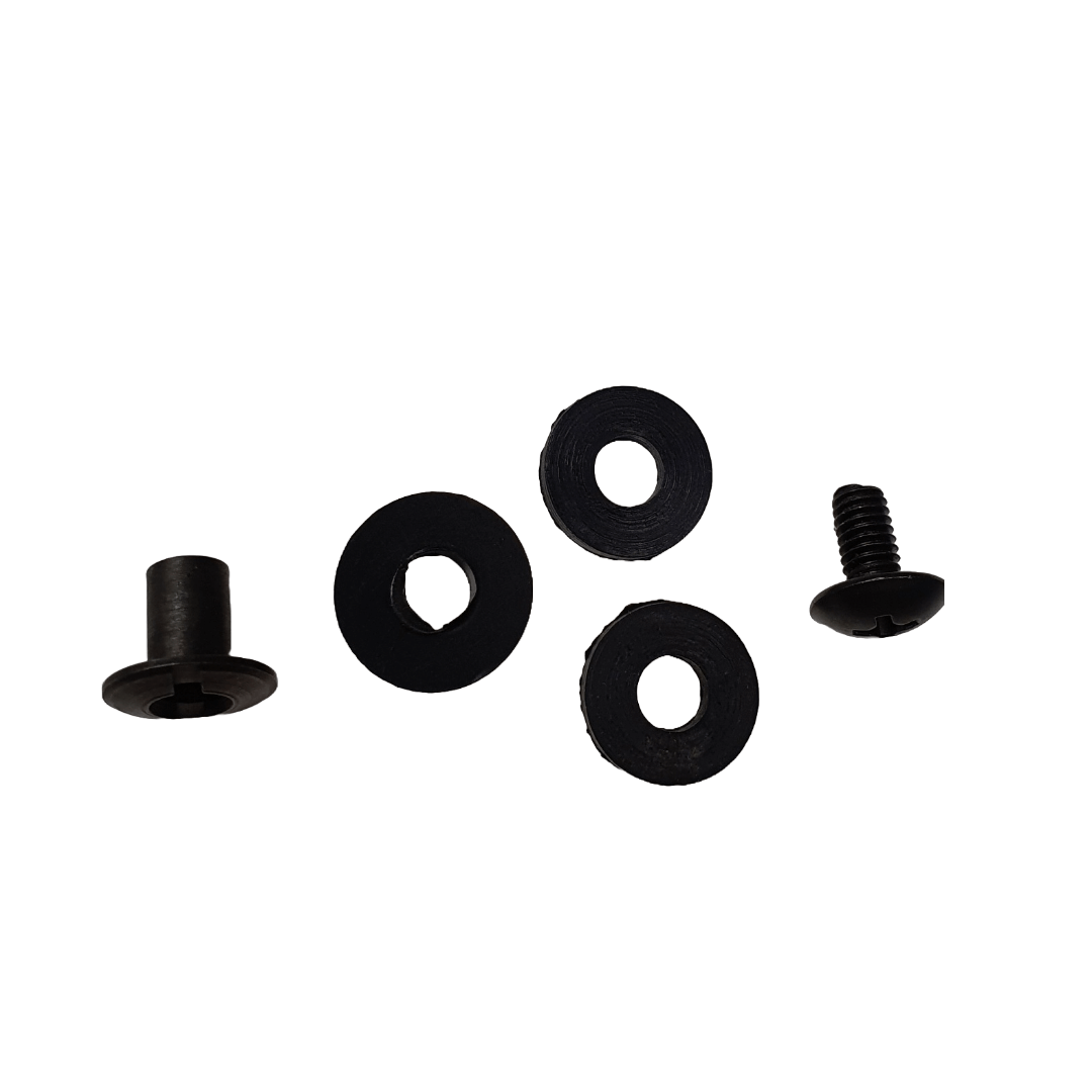 Spare/replacement screw kit for Battle Gnome Solutions holsters. Includes 2 screws, 2 counterparts, 4 rubber spacers, and 2 plastic spacers.