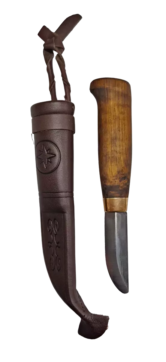 Eräpuu Hunter Junior knife with a slightly smaller handle and blade. The knife blade is dulled for safety.