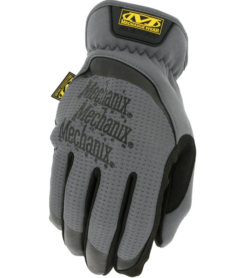 Mechanix FastFit gloves, Work model. The difference from the standard Fastfit model is the red pull tab on the inner wrist.