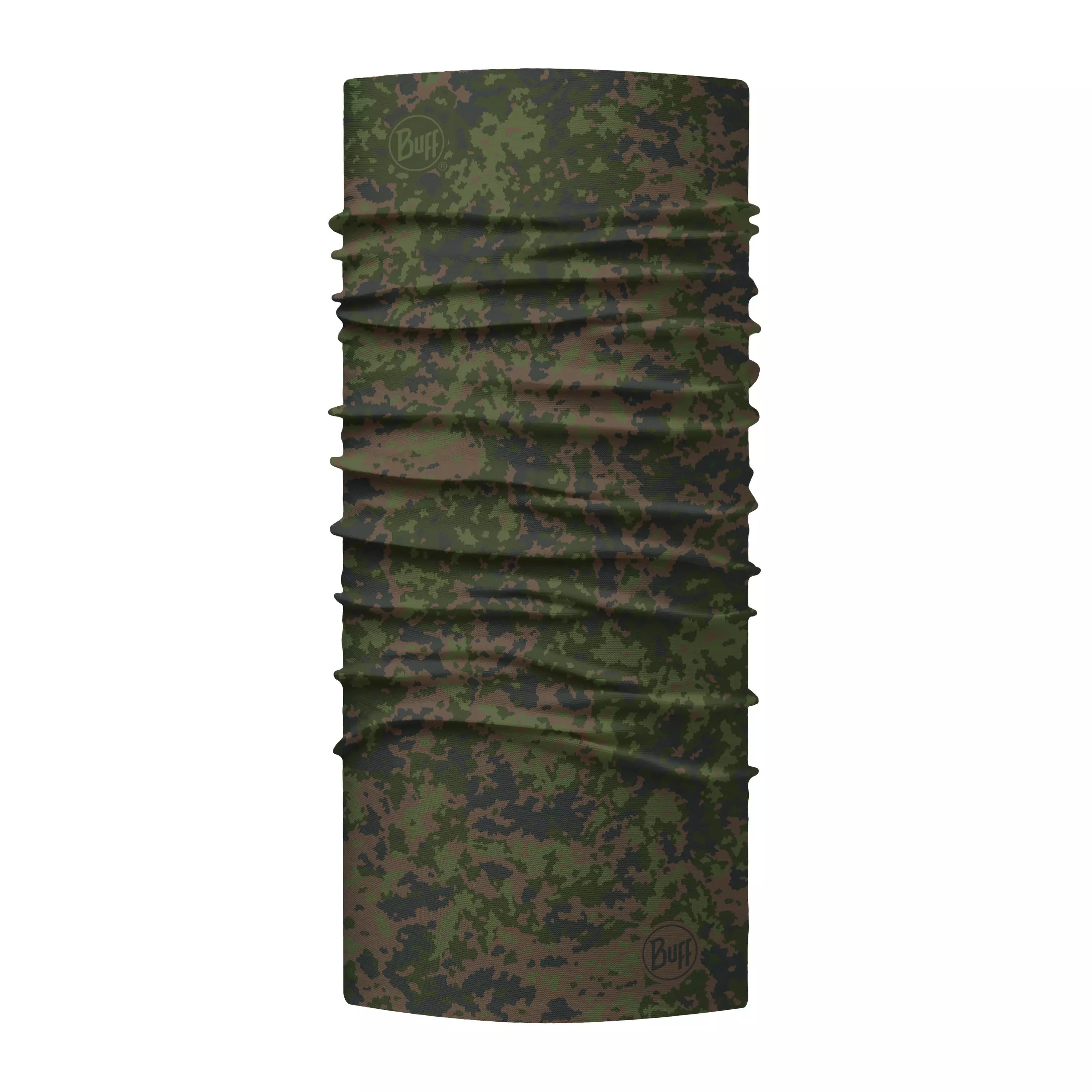 Tube-shaped, highly elastic, and thin BUFF Safety multifunctional headwear featuring the Finnish Defence Forces M05 Forest Camo pattern.