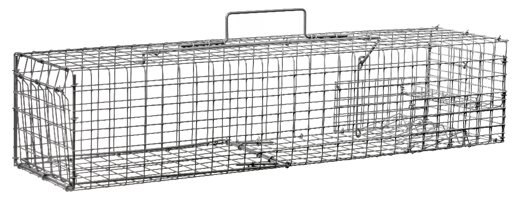 Mink trap, live-capture, ready-assembled domestic trap. Size 16 x 18 x 72 cm. Mink may be trapped throughout the hunting season, excluding breeding protection from 1.5.-31.7. Live trapping must be arranged so that at least once a day, it can be checked if an animal has entered the trapping device.