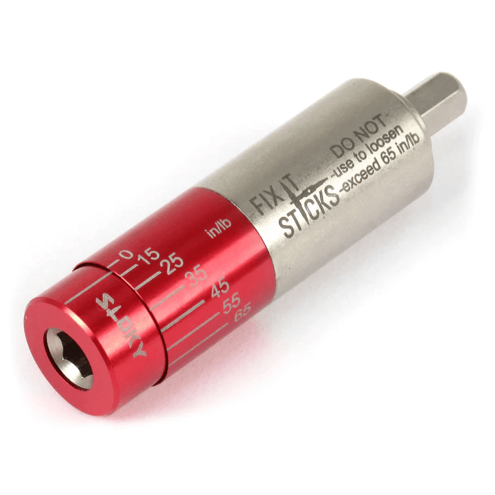 Fix It Sticks ALL-IN-ONE torque limiter includes clear markings every 10 in-lbs starting from 15. An excellent multi-purpose tool to keep in your range bag. The limiter is ideal for tightening scope rings, bipods, red dots, and other screws, preventing over-tightening and stripping screws. The torque accuracy is +/-10%. The limiter fits standard 1/4" bits and attaches to a standard 1/4" drive like the Fix It Sticks wrench. Like other torque wrenches, it should only be used for tightening, never for loosening. Product includes only the limiter, no wrench.