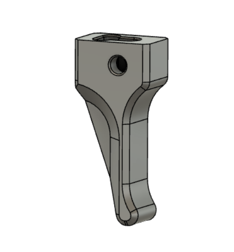 Flat design with a small radius at the end allows for a much lower but very secure finger placement and longer leverage. This results in better control and feel of the trigger throughout its entire trajectory.