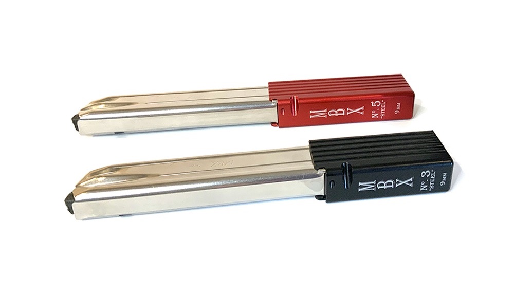 MBX Extreme Glock-style 155mm long PCC magazine with a three-inch extension. A more durable option compared to standard Glock magazines! Capacity of 38 rounds. Stainless steel frame, with black and red color options for the aluminum magazine extension.