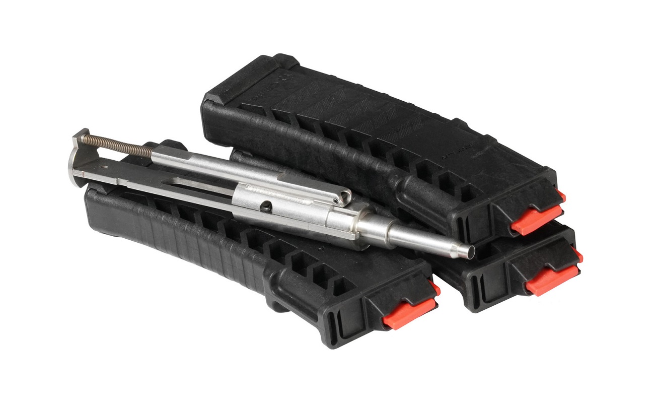 With this conversion kit, you can transform a 223 Rem / 5.56 NATO AR-15 into a rifle that fires 22LR rimfire cartridges.