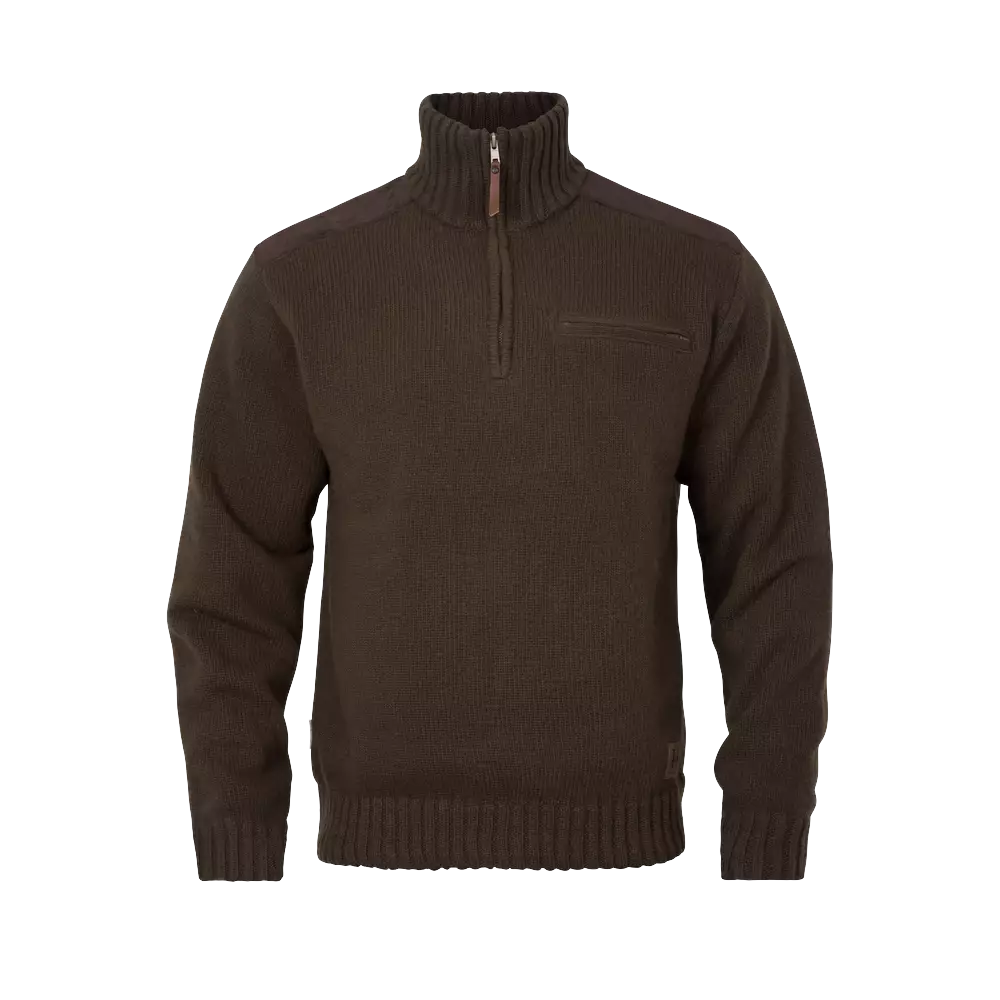 A zippered chest pocket and rib-knitted details blend classic design with functionality suitable for hunting use.