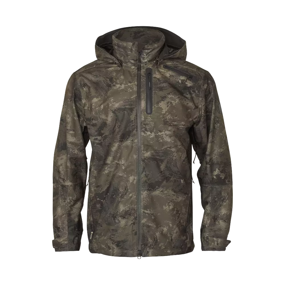 The Forest Hunter GTX Camo Jacket is tailored for hunters exploring dense forests. Its GORE-TEX membrane ensures waterproof and breathable protection, while articulated elbows and ventilation zippers improve mobility and comfort. Multiple pockets and an adjustable hood complete this reliable and inconspicuous shell jacket.