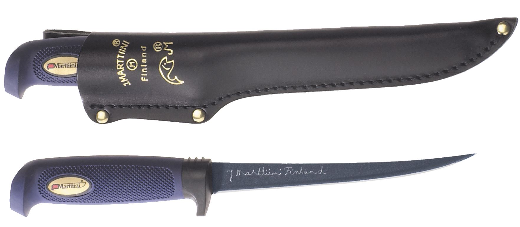 The Martef-coated fillet knife features a sharply cutting blade that is smooth and nearly frictionless.