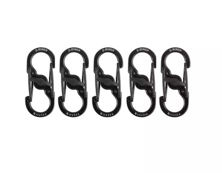 Compact Nite Ize S-Biner carabiners with Micro-Lock locking mechanism. Constructed from high-quality stainless steel, perfect for securing keys and other small items. Each pack contains 5 pieces.