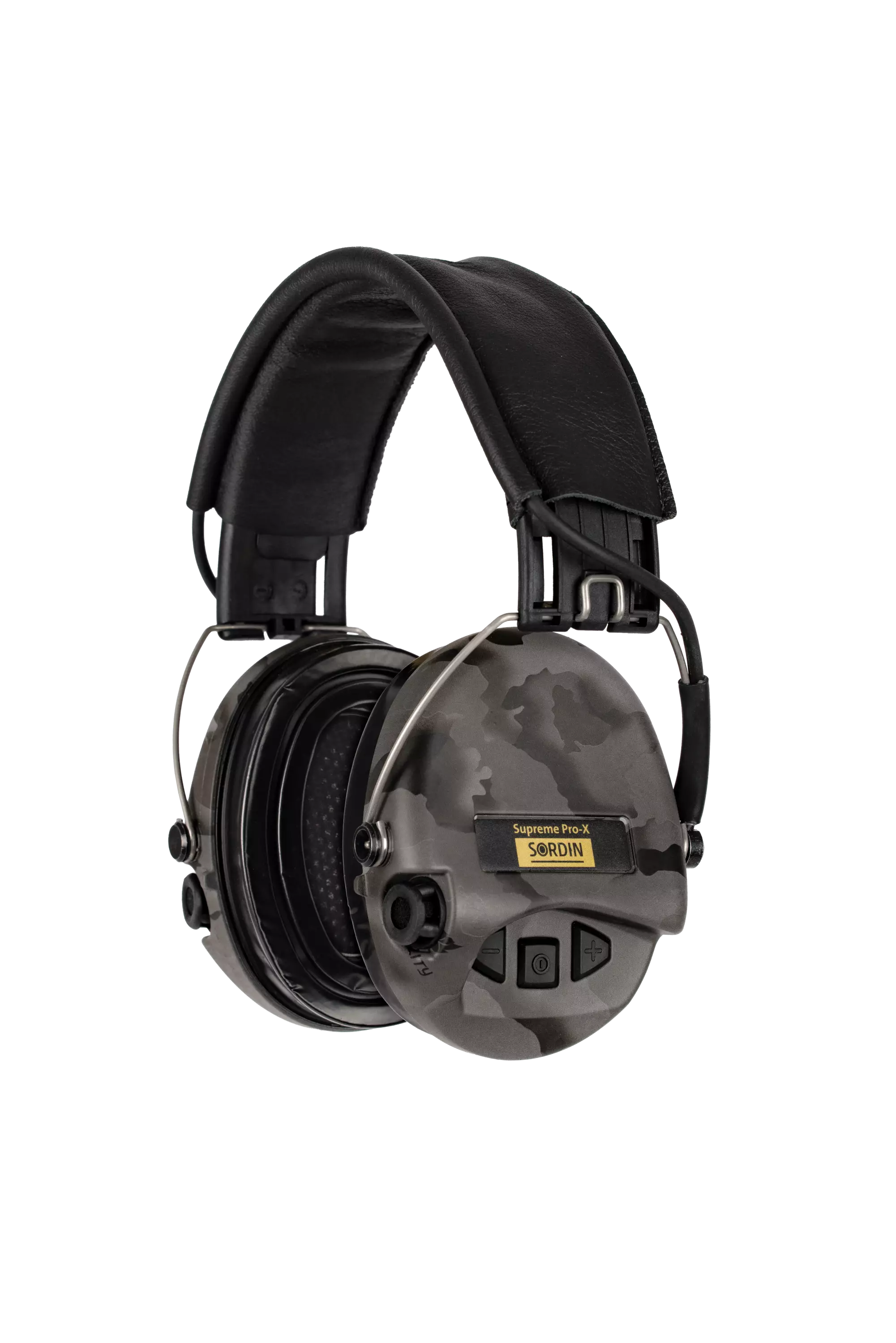 Sordin Supreme Pro-X Hear2 LED Gel Night Camo is a low-profile active cup hearing protector with gel cushions, 3.5mm AUX connector, LED light, and sound amplification functionality. Premium quality and easy to use thanks to push buttons, this hearing protector with level-dependent features is ideal for activities such as hunting, shooting, and demanding professional use. Waterproof microphones on both sides provide directional hearing. Waterproof speakers and electronics inside ensure reliable operation even in the most challenging conditions. The light keeps both hands free while illuminating the line of sight. Camouflage fabric headband and dark green cups.