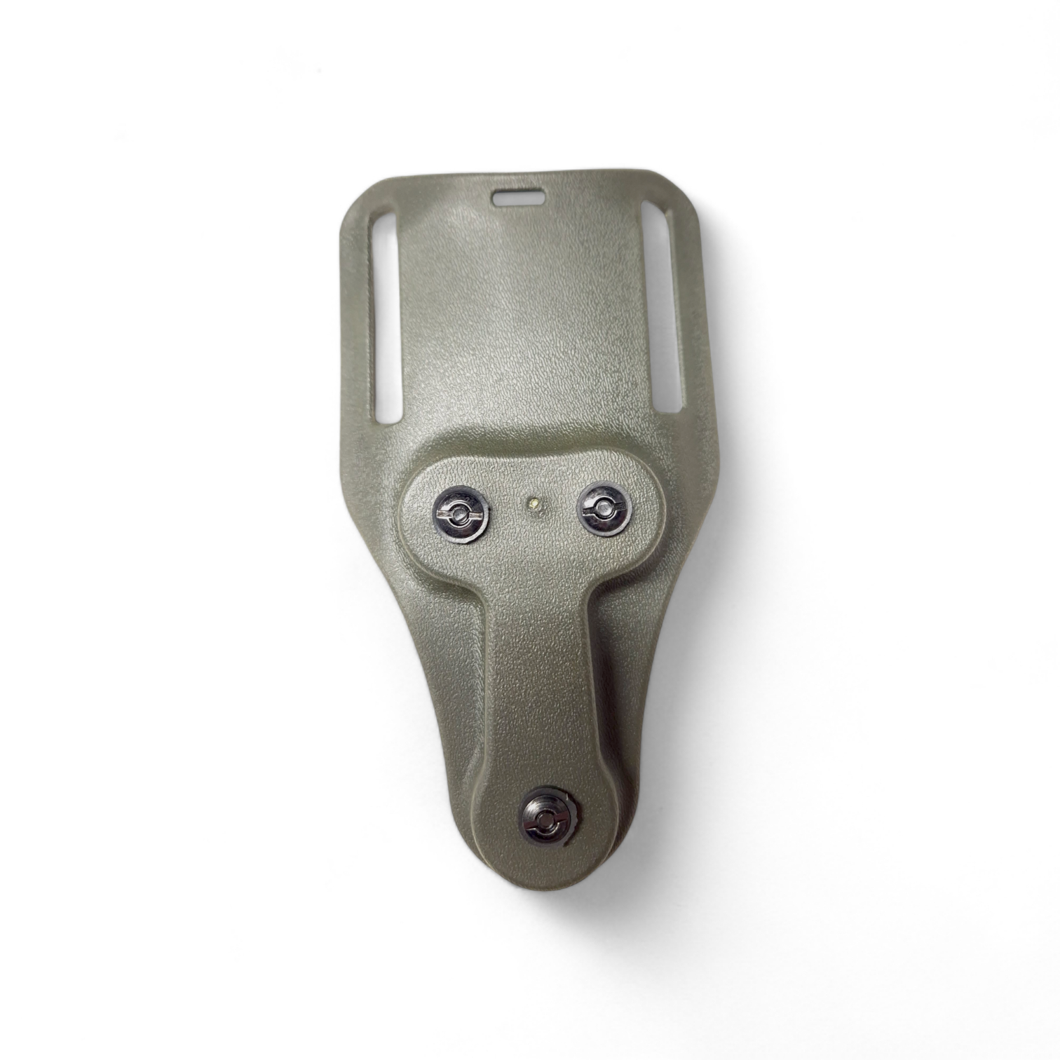 Toimii hyvin jalkahihnan kanssa. Toimii hyvin yhdessä BGS tai Safariland koteloiden kanssa.