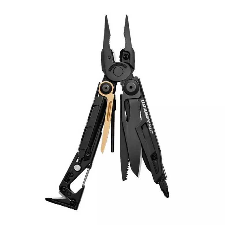 Leatherman MUT ei ole vain erittäin käytännöllinen, kestävä ja monipuolinen monitoimityökalu, vaan sen avulla voi myös ylläpitää erilaisia militaarisia varusteita. Mukana toimitetaan myös musta Molle-vyökotelo ja jatkovarsi.