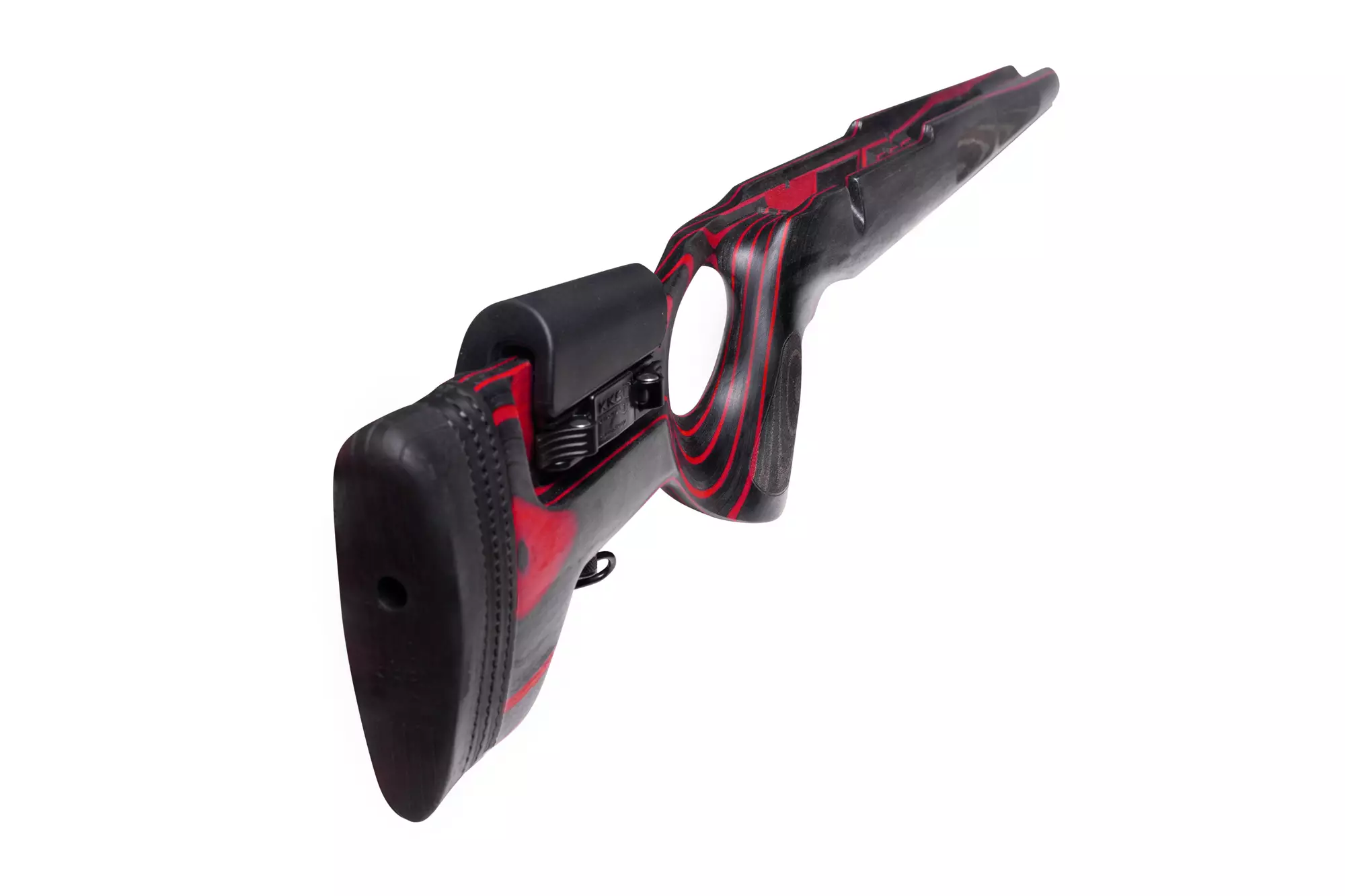 KKC: aito ja alkuperäinen, täysin säädettävä, laminaattitukki. Tukki painaa noin 1 kg, riippuen mille kiväärille se on valmistettu. Perän pituutta on mahdollista säätää 33,9 senttimetristä 35,5cm asti. Lisävarusteena saatavilla peränsäätö paloilla voidaan perän pituutta säätää aina 37,1cm asti.