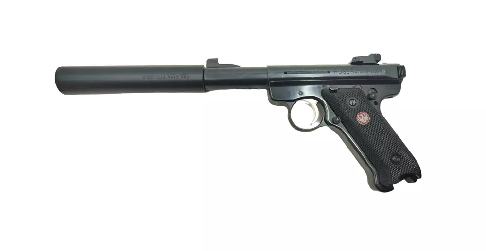 Ruger MK-III Target 22LR käytetty pienoispistooli Ase Utra Eco vaimentimella, 4 kpl 10ptr lippaita.