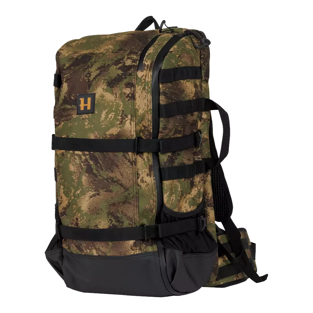 27 litran vetoinen Härkila Deer Stalker -reppu tarjoaa erinomaista käytettävyyttä ja organisointimahdollisuuksia kiväärin ja muiden metsästystarvikkeiden kuljettamiseen.