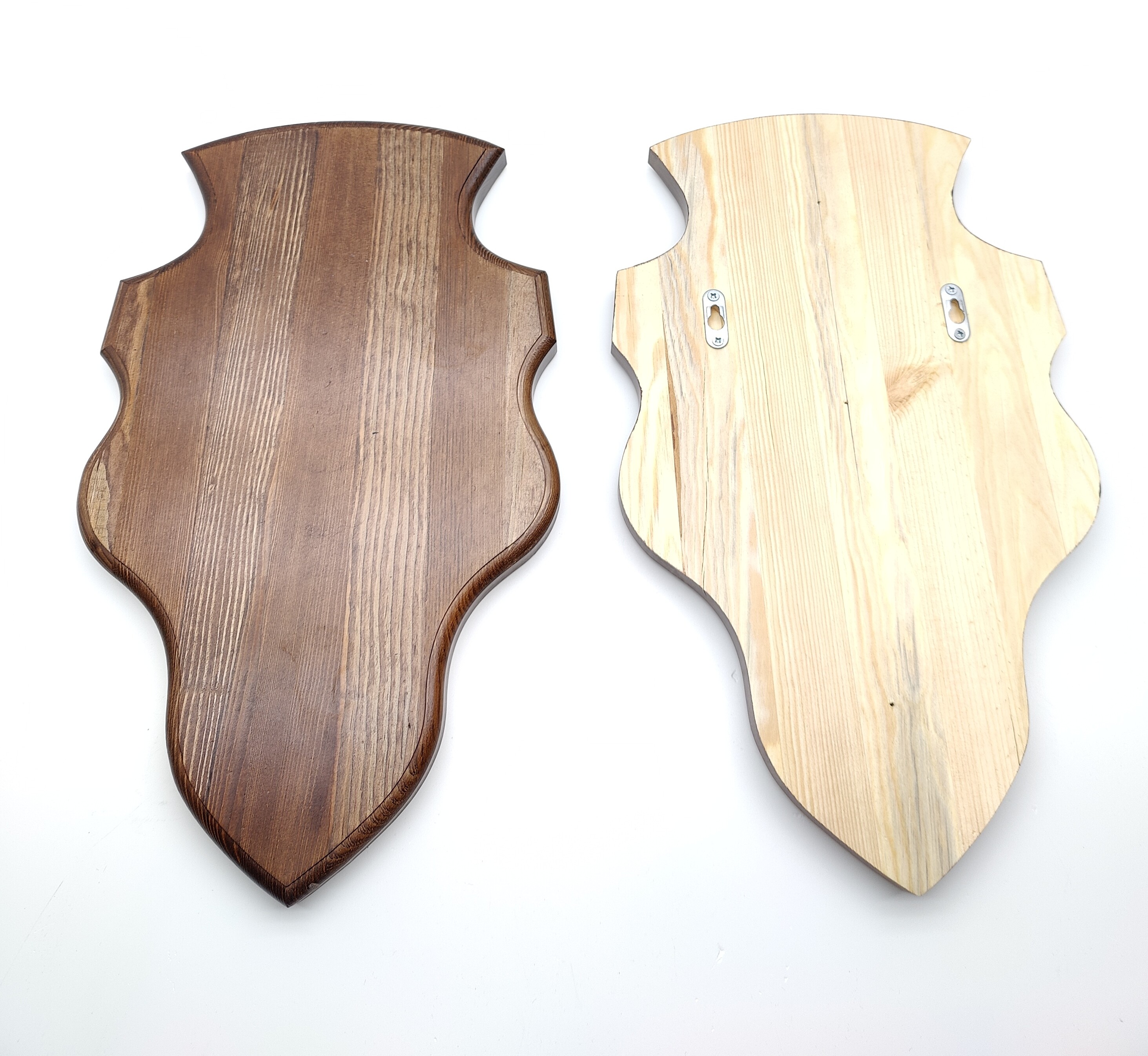 Trofee Taustalevy Hirvi 49cm x 30cm, suomalaista käsityötä! Tumma ja kirkas. Tummassa 2 kiinnityspaikkaa takana. Kirkkaassa 1 kiinnityspaikka.