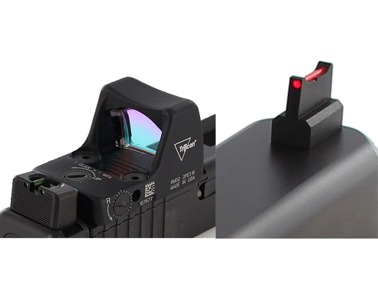 Sisältää kuitu etutähtäimen. Mukana vihreä / punainen kuitu. Kiinteä takatähtäin.