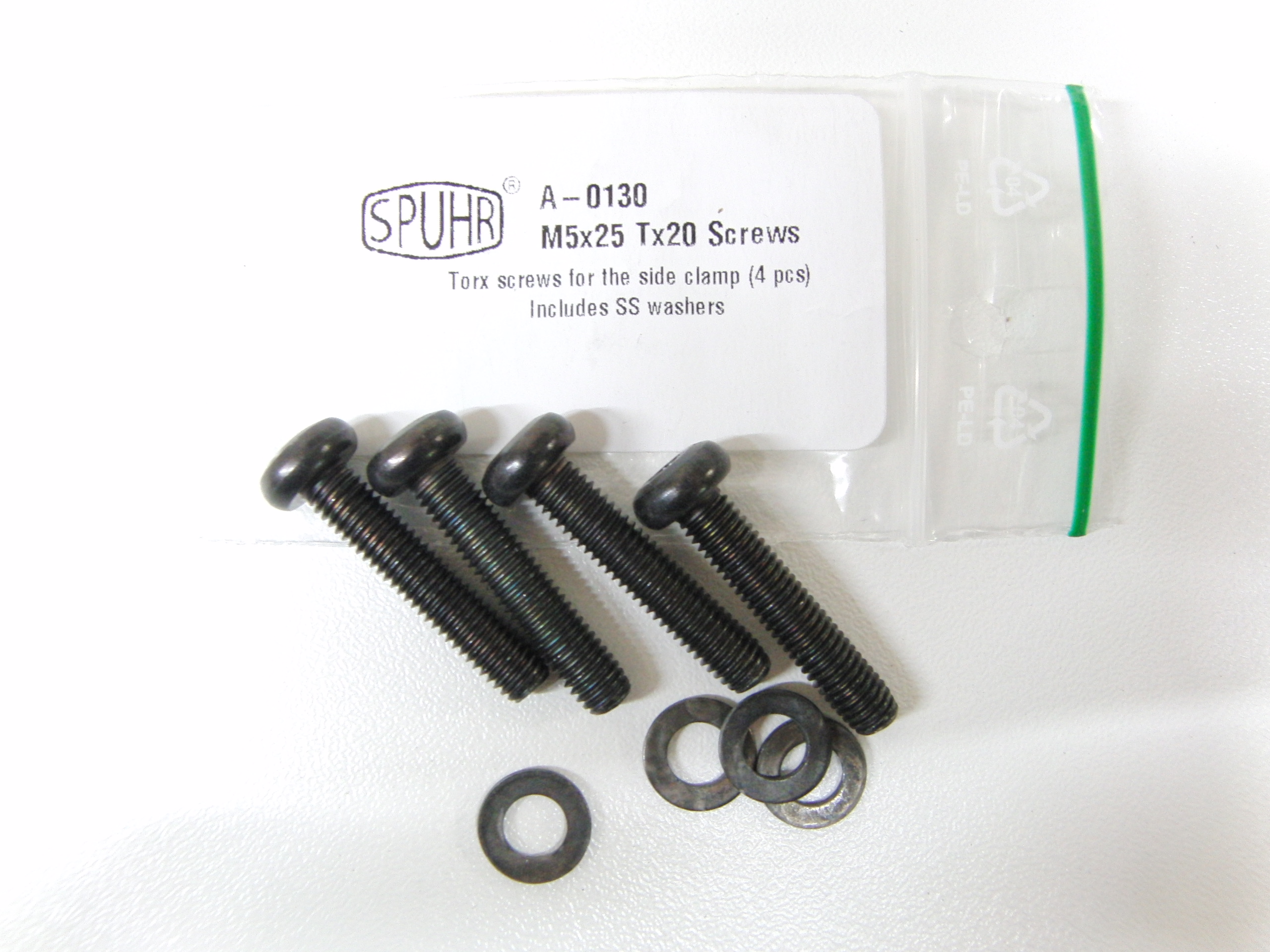 Article number: A-0130 - 4pc of screws -SPHUR M5x25 Torx 20 screws (4 pcs) for the Picatinny side clamp on all: - SP-***2/SP-***3B/SP-***4/SP-***6/SP-***8 mounts.