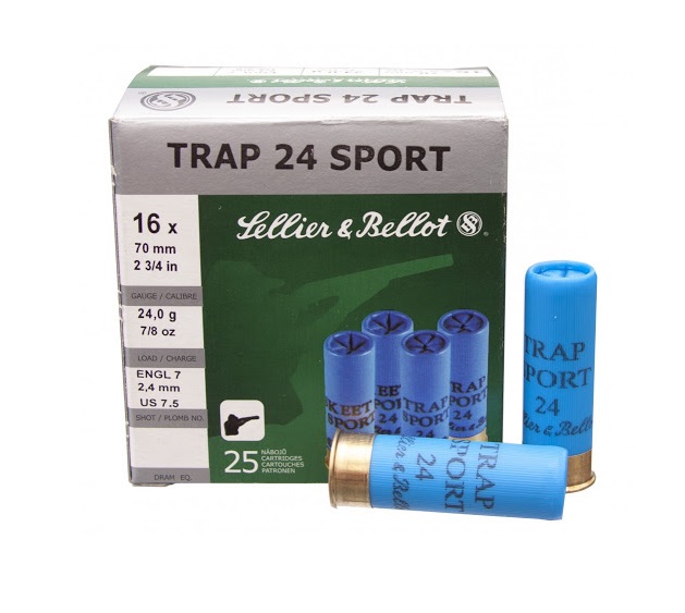 16/70 Sellier & Bellot Trap Haulikonpatruuna 24 Gramman latauksella ja 2,4mm haulilla
